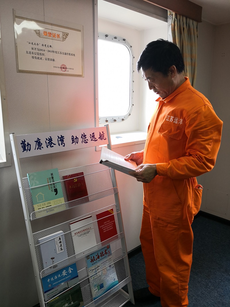 為加強(qiáng)對(duì)船員黨員的廉潔教育,積極發(fā)揮這些黨員的先鋒模范作用,江蘇遠(yuǎn)洋結(jié)合“船員廉潔海上課堂”,創(chuàng)新實(shí)踐,打破時(shí)間與空間的格局束縛,讓“廉潔”黨旗揚(yáng)帆起航。
