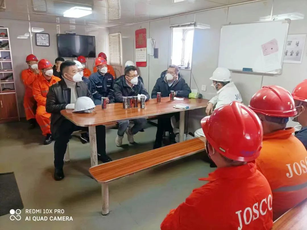 1月22日大年初一,江蘇遠(yuǎn)洋所屬通海航運(yùn)總經(jīng)理許永波、副總經(jīng)理管健及岸基相關(guān)部室負(fù)責(zé)人冒雨抵達(dá)南京龍?zhí)陡鄞a頭,登上停泊在碼頭的“江遠(yuǎn)集9”輪開展春節(jié)安全檢查,做好節(jié)日期間安全部署并慰問一線船員。