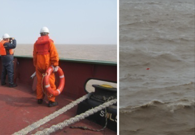 4月4日上午7時(shí)48分,浙海517輪上的我司船員首先接到鹽城海事指揮中心的救援通知:“象嶼藍(lán)海”于測風(fēng)塔位置沉沒,需要緊急救援。接到通知后,公司外派船長王幼南迅速按照指示啟動(dòng)營救落水人員應(yīng)急預(yù)案;8時(shí)30分,浙海520輪上的我司船員也接到救援通知,船長江文軍迅速組織船員,也加入救援行列。兩艘船舶全體船員根據(jù)應(yīng)急預(yù)案各就各位,迅速備妥可能需要的救生設(shè)備,現(xiàn)場救助小組在主甲板集結(jié)待命。