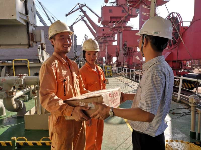 8月16日和17日,公司紀委書記戴偉率安監(jiān)部、船管部赴靠泊在嵐山和連云港的“江遠太倉”和“江遠惠州”輪,代表公司慰問奮戰(zhàn)在盛夏酷暑一線船員兄弟們,并為他們送上慰問金和一些清涼飲料及防暑降溫食品。