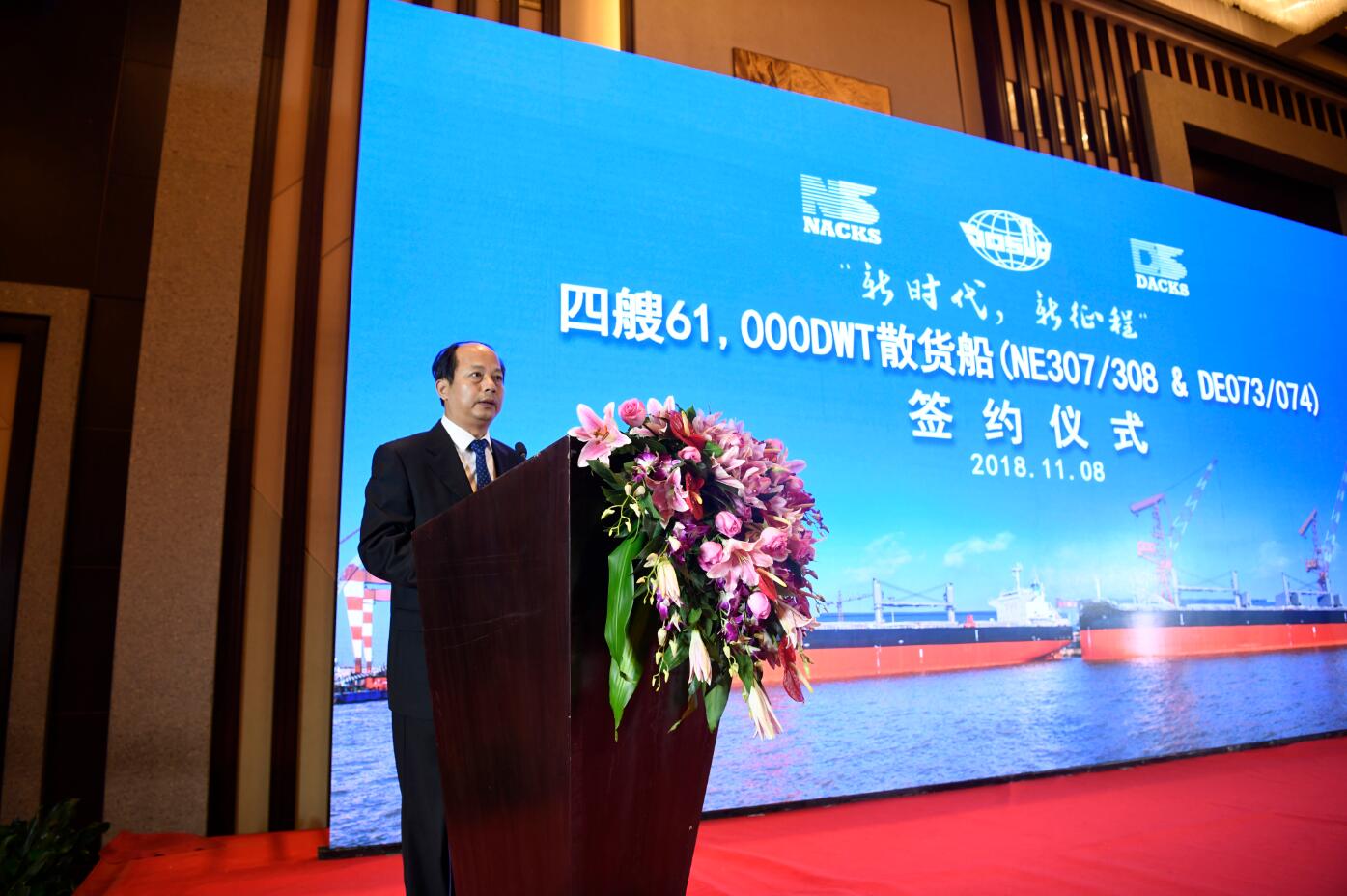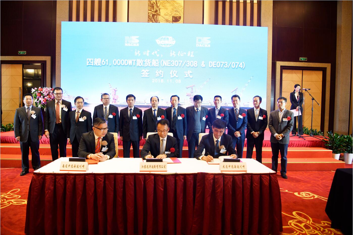 11月8日,江蘇遠(yuǎn)洋運(yùn)輸有限公司與南通/大連中遠(yuǎn)海運(yùn)川崎船舶工程有限公司4艘6.1萬(wàn)噸散貨船合同簽字儀式在南京舉行。