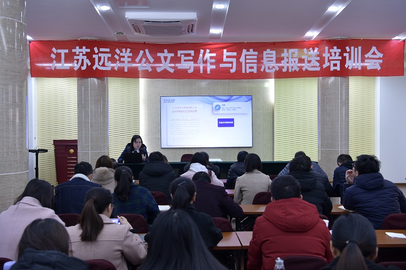 培訓(xùn)會上,沈主任從公文文種、公文行文規(guī)則、公文格式要素以及公文流轉(zhuǎn)等六個方面對公文寫作做了深入淺出的介紹,并結(jié)合江蘇遠(yuǎn)洋公文運轉(zhuǎn)實際,說明了公文文種的選擇在與外單位交往過程中的重要性。同時,沈主任還特別強調(diào),公文流轉(zhuǎn)過程中要注意保密紀(jì)律的遵守和涉密文件的傳輸。