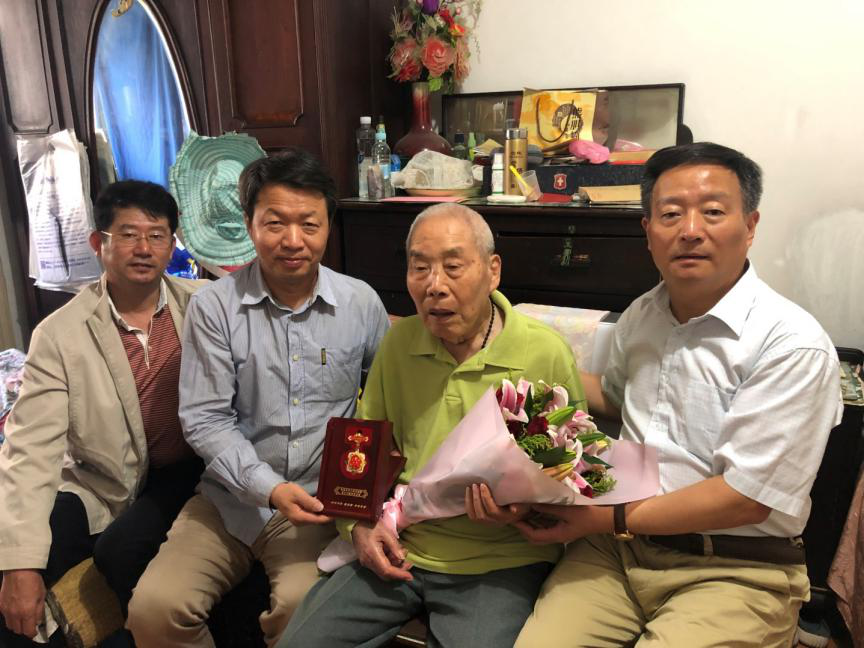 現(xiàn)年92歲的李學(xué)純老同志1948年12月在淮海戰(zhàn)役中參加了解放軍。老同志收到紀(jì)念章非常高興,老人年事已高、說話不便,但對(duì)黨和國家的關(guān)懷愛護(hù)感激之情溢于言表。