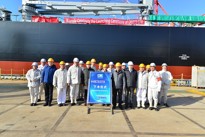 27日上午,下水儀式順利舉行。江蘇遠(yuǎn)洋副總經(jīng)理李斌代表公司黨委書記、董事長晁陽及總經(jīng)理毛雪強(qiáng)出席下水儀式。公司相關(guān)部室的負(fù)責(zé)人、駐廠監(jiān)造組人員,工銀租賃、NK船級社、DACKS相關(guān)領(lǐng)導(dǎo)等參加下水儀式。李斌副總經(jīng)理還參觀了DACKS廠區(qū)及部分智能生產(chǎn)車間,聽取了相關(guān)介紹,與DACKS劉煥明副總經(jīng)理就雙方的合作與發(fā)展進(jìn)行了交流。