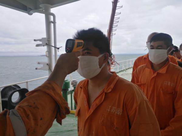 各船舶及時(shí)傳達(dá)省港集團(tuán)、江蘇遠(yuǎn)洋公司關(guān)于疫情防控的工作要求,組織船員認(rèn)真學(xué)習(xí)各項(xiàng)防控部署精神,讓船員從病情癥狀、傳染途徑、預(yù)防措施等方面,強(qiáng)化自我防護(hù)、及早防護(hù),切實(shí)做好預(yù)防,積極配合海事、檢疫等口岸單位做好船員的疫情防控與服務(wù)工作。船岸密切關(guān)注船員健康情況,及時(shí)通報(bào)防控疫情工作情況,切實(shí)做到早準(zhǔn)備、早防范、早部署,加強(qiáng)疫情監(jiān)測。