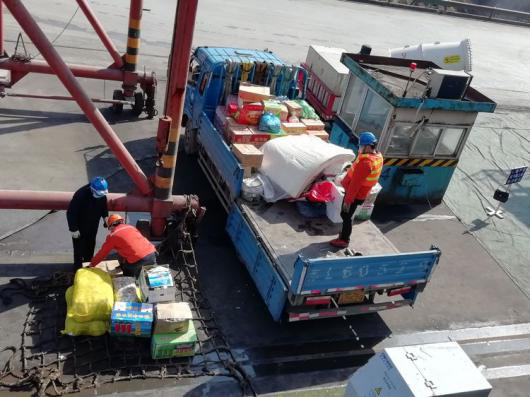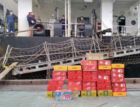 防疫期間船員不能下地,收到蔬菜、水果等物資,真的是雪中送炭