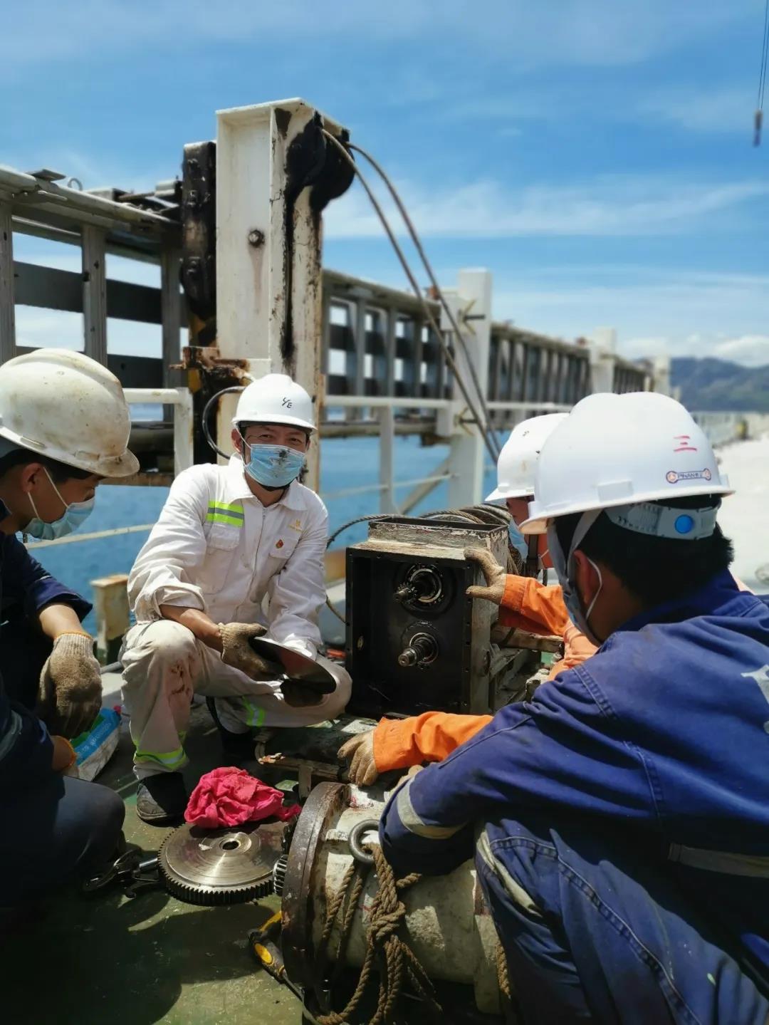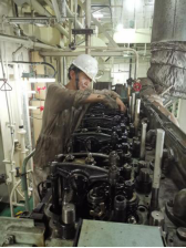 尹圣國進行船舶設(shè)備檢修