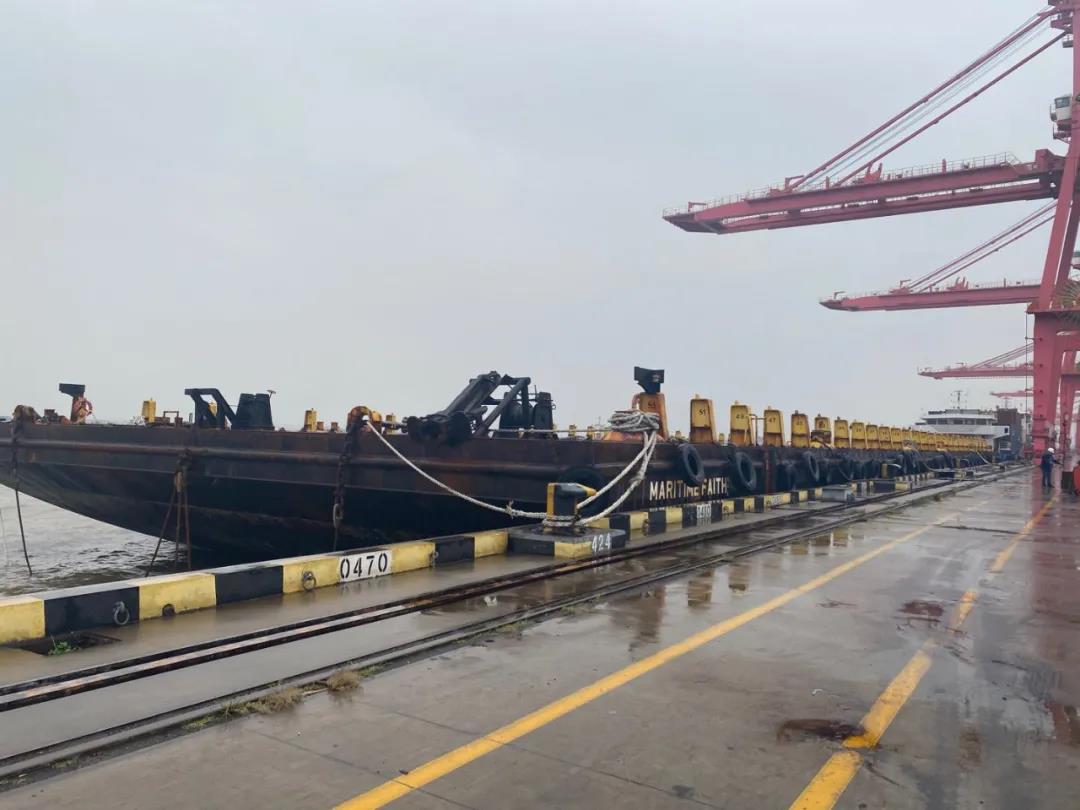 10月2日,中國籍拖輪“寧海拖4002”拖帶著一條新加坡籍駁船“Maritime Faith”輪緩緩向南京港龍?zhí)都b箱碼頭808泊位駛來。龍?zhí)陡凼状斡瓉碛蓢H航線拖輪+外國籍無動(dòng)力駁船組成的拖帶船隊(duì),其進(jìn)出港手續(xù)履行、在港外貿(mào)作業(yè)流程均等無先例可詢。