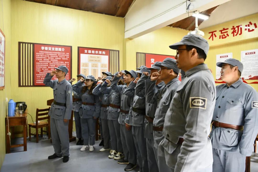 黨員同志們身著新四軍軍裝,穿梭于李巷的青磚墻、石板路間,參觀革命前輩和革命先烈的舊居,仿佛置身于前仆后繼、浴血奮戰(zhàn)的崢嶸歲月,深切感受到共產(chǎn)黨人的使命擔(dān)當(dāng)。大家重溫入黨誓詞,為共產(chǎn)主義奮斗終身的誓言回蕩在李巷上空。